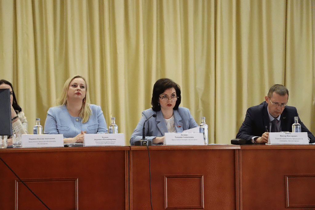 С главным докладом выступила председатель концерна Татьяна Лугина. Главные темы – инвестиционное развитие и выполнение ключевых показателей, подготовка кадров для предприятий легкой промышленности и итоги работы на внешних и внутренних рынках.
