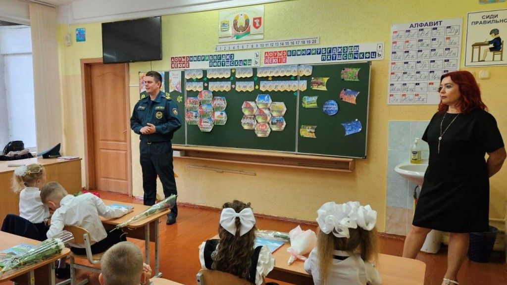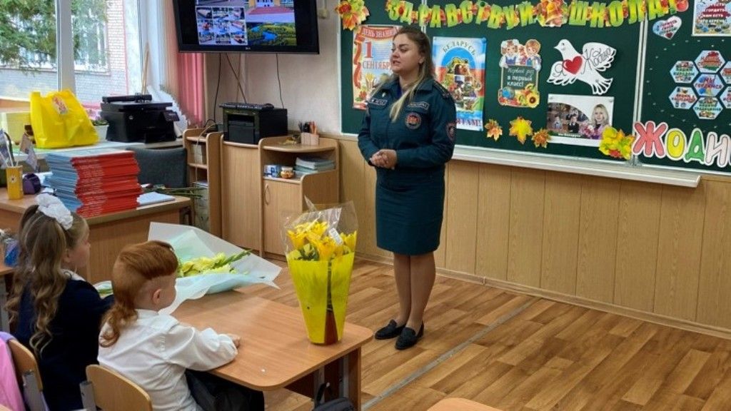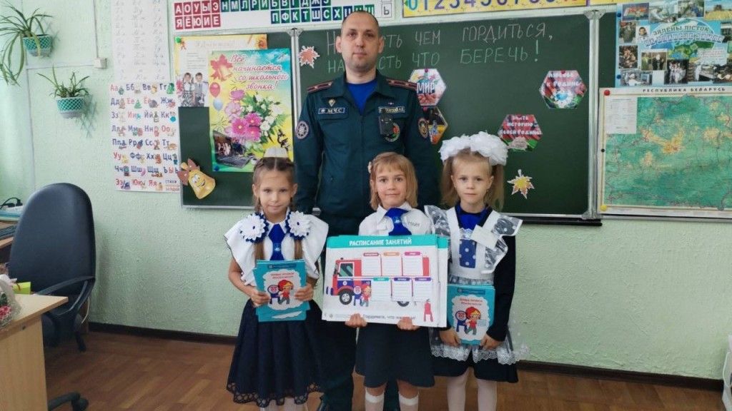Работники Жодинского городского отдела по ЧС напомнили учащимся правила вызова спасателей, как правильно действовать в случае пожара, повторили с ними номера экстренных служб. Рассказали первоклашкам и о том, что необходимо соблюдать правила безопасности не только дома, по дороге в школу, но и в самом учреждении образования.