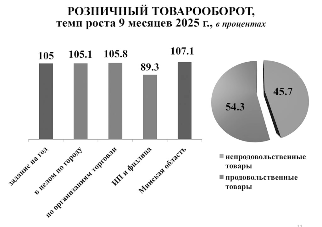 О результатах работы реального сектора экономики за январь-сентябрь 2025 года и перспективах достижения параметров и целевых показателей эффективности работы города за год доложил заместитель председателя горисполкома Александр Рубанцев. Есть рост объемов промышленного производства, идет реализация проектов в рамках программы «Один район – один проект», выпускается инновационная продукция, вводится в эксплуатацию жилье и растет розничный товарооборот. Но есть и тенденции, которые настораживают.