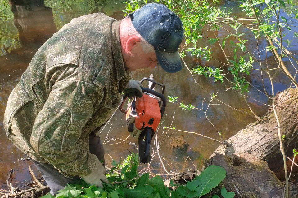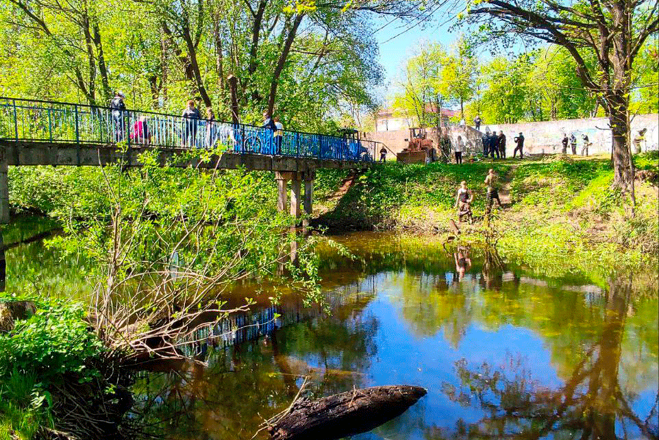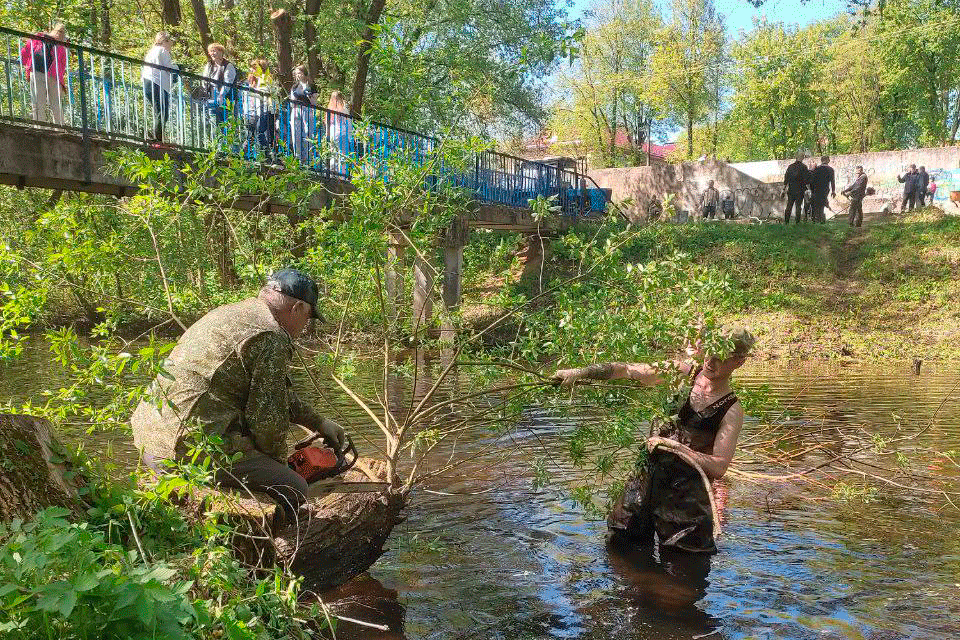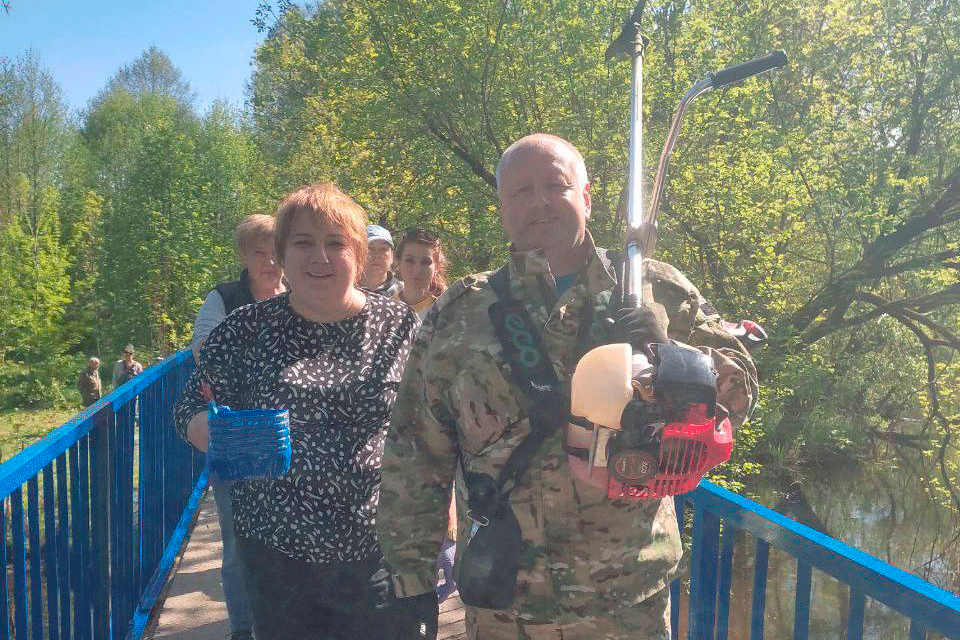 Здесь участники акции убрали мусор, обкосили траву, спилили старые деревья и сухие ветки, очистили реку от поваленных деревьев.