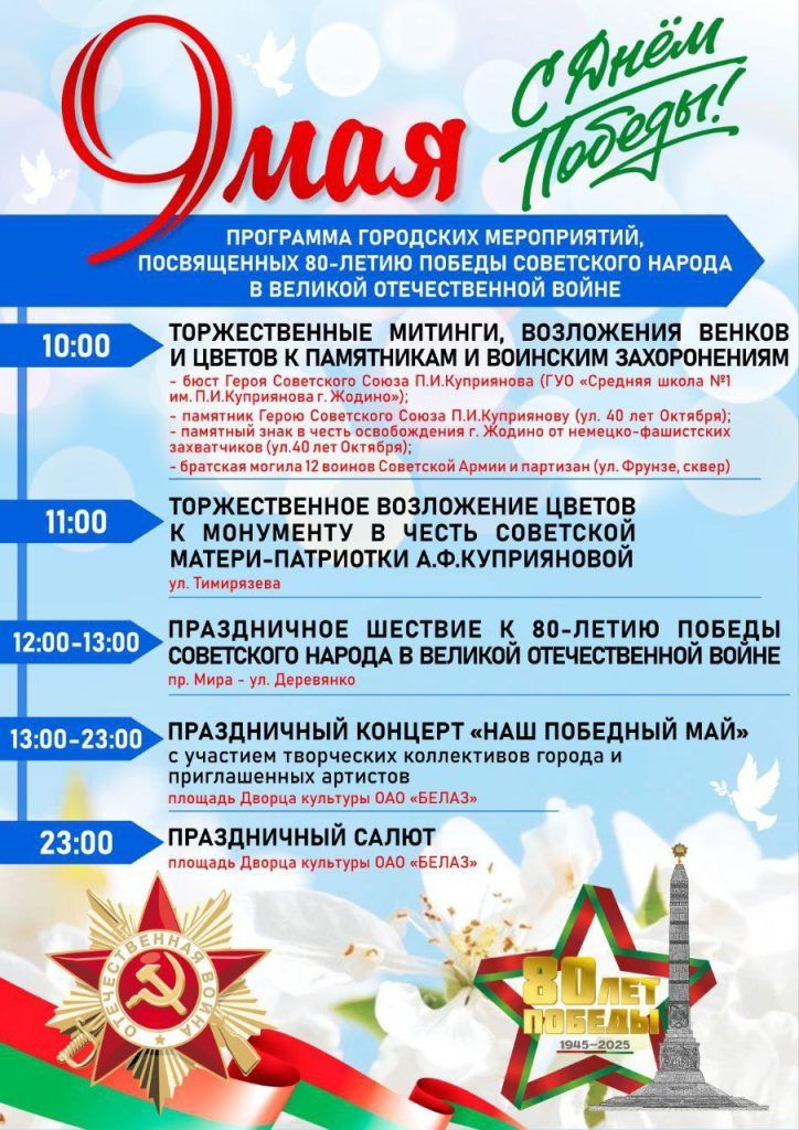 Приглашаем вас на торжественные мероприятия, посвящённые 80-й годовщине Победы советского народа в Великой Отечественной войне!