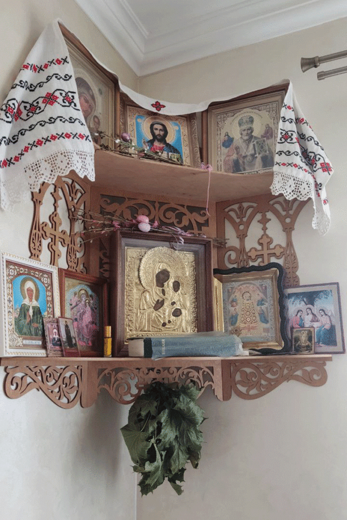 Издревле наиболее почетное местов избе у восточных славян занимал красный угол, в котором находились иконы и стоял стол. Есть такой и в доме моих героев.