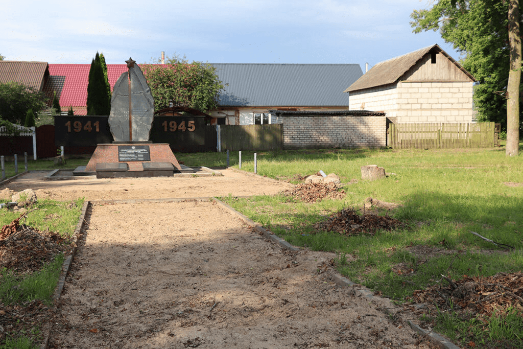Теперь благоустраивается территория: расширена дорожка, ведущая к памятнику, песок утрамбован, значит, скоро начнется укладка плитки, появится освещение. Работы по благоустройству выполняет строительное управление №161, а реконструкцию памятника – компания из Логойска, специализирующаяся на изделиях из природного камня.