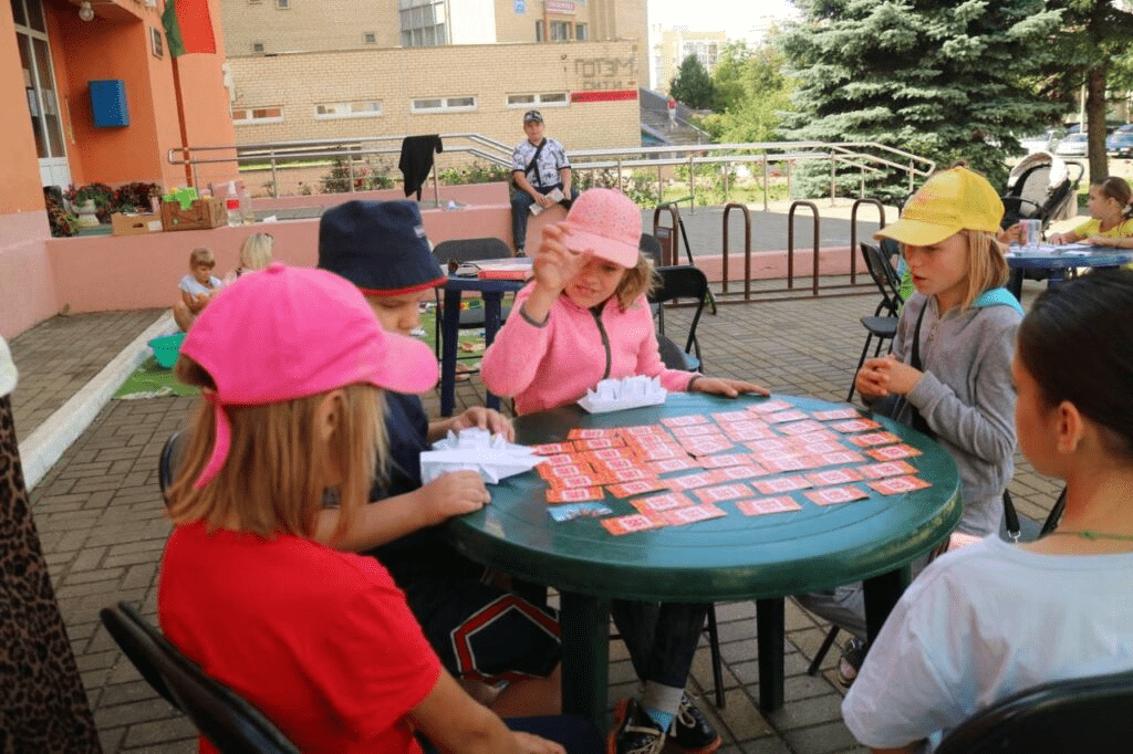 Дети делятся на команды и участвуют в различных конкурсах. Бегают, прыгают, решают головоломки и отвечают на вопросы. Также знакомятся с разнообразными настольными играми, которые помогают развить их эрудицию, логическое мышление и словарный запас.