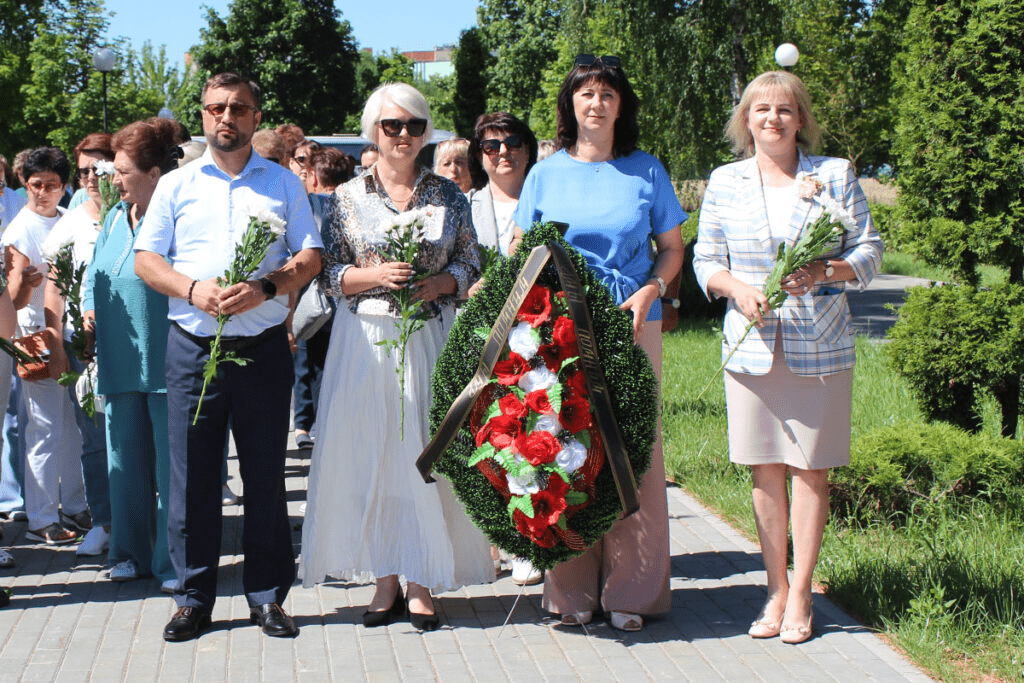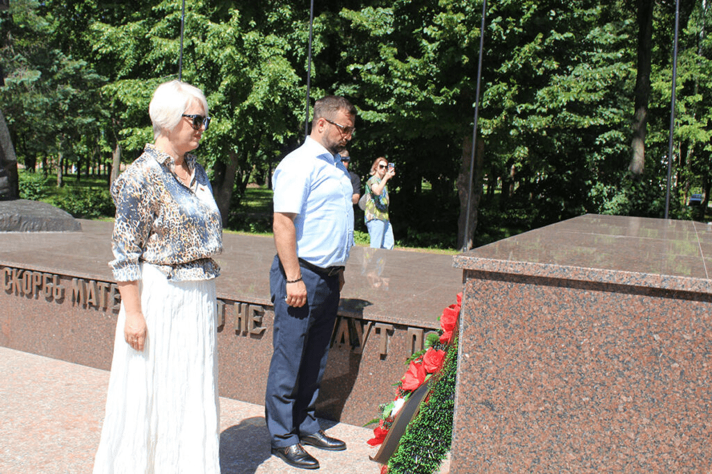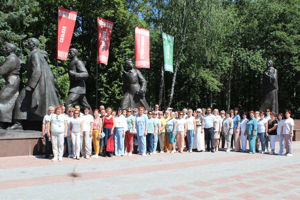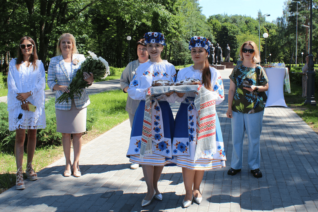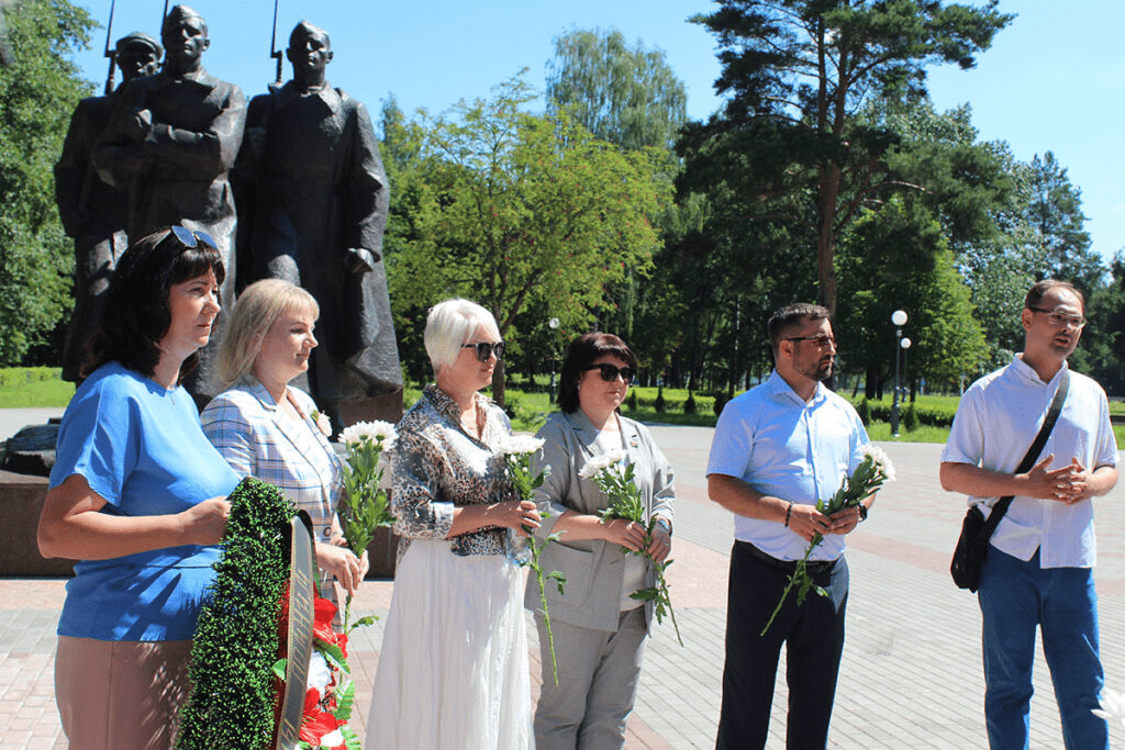 Председатель Минской областной организации Белорусского профсоюза работников образования и науки Татьяна Апранич и председатель Орловской областной организацией профессионального союза работников народного образования и науки Владимир Скуридин возложили венок к подножию монумента.
