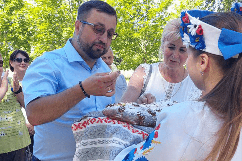 Сегодня у монумента в честь матери-патриотки Анастасии Фоминичны Куприяновой гостей встречал Жодино. Девушки в национальных костюмах угостили караваем. Приветствовали россиян на нашей земле председатель городской профсоюзной организации Наталья Курсевич, начальник отдела по образованию, спорту и туризму Ольга Голобородова, председатель Жодинской городской организации Белорусского профсоюза работников образования и науки Елена Ахрамович.