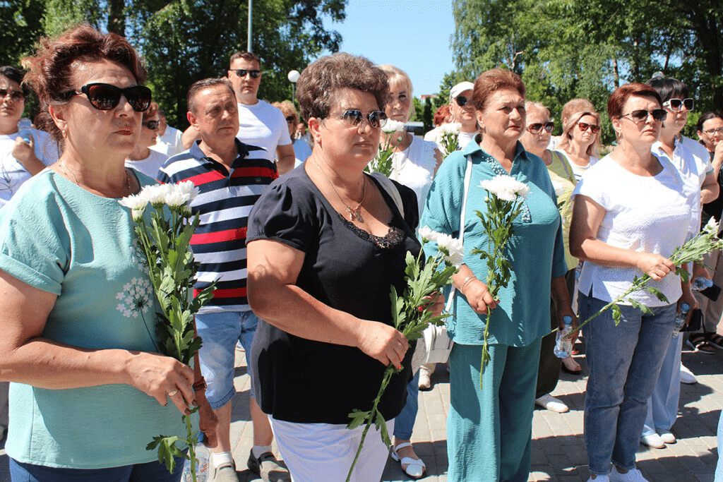 Научный сотрудник Жодинского краеведческого музея Сергей Визнер рассказал историю монумента в честь матери-патриотки Анастасии Куприяновой. После минуты молчания гости возложили цветы.