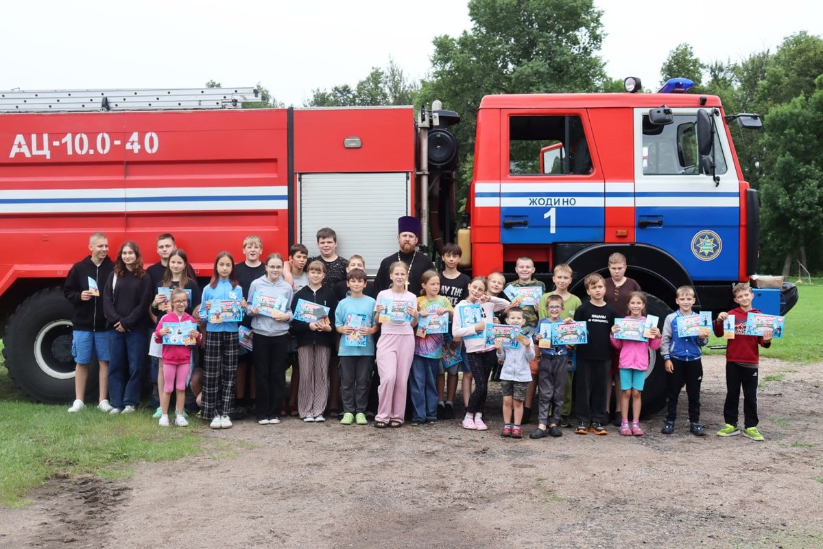 Спасатели города Жодино напомнили правила безопасного поведения на водоеме и оказание первой помощи при утоплении ребятам из воскресной школы Прихода Храма Преподобного Сергия Радонежского.