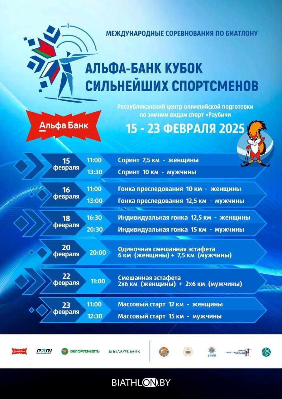 15 февраля 2025 года в Раубичах стартуют международные соревнования по биатлону «Альфа-Банк Кубок сильнейших спортсменов