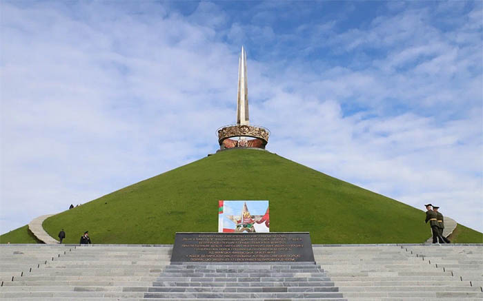9 мая вся Беларусь отдает дань уважения поколению победителей — вечным героям, подарившим нам возможность жить под мирным небом. Во всех регионах проходят акции, посвященные Великой Победе: белорусы несут цветы к памятникам и мемориалам, могилам неизвестных солдат. Память погибших в страшной войне почтили и на «Кургане Славы» — возложить цветы к подножию знакового мемориала приехал председатель Минского облисполкома Александр Турчин.