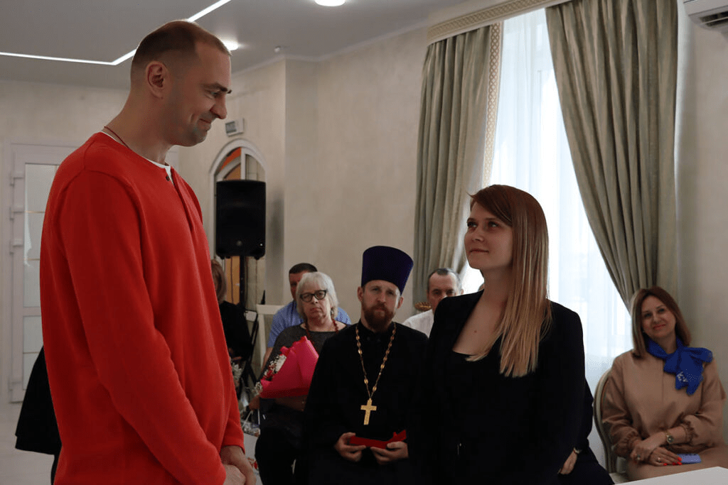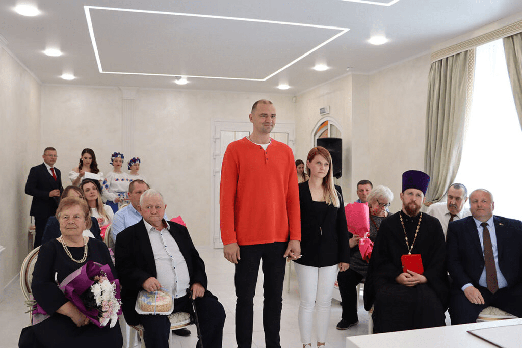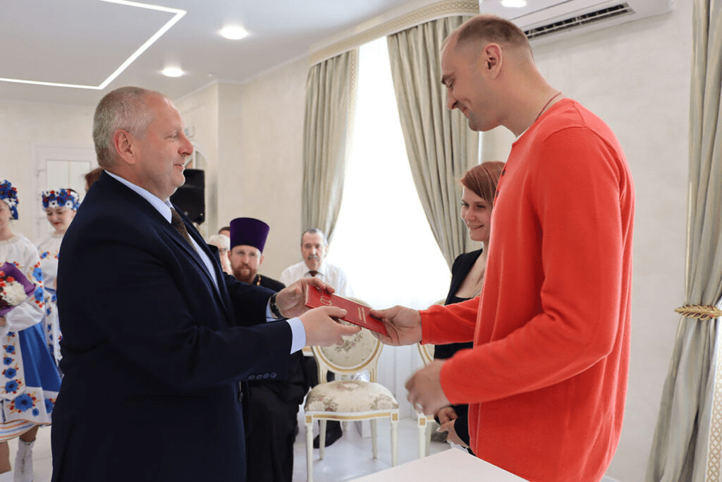 Дмитрий Васильевич поздравил супружескую пару с Днем семьи и, конечно же, вручил подарки.