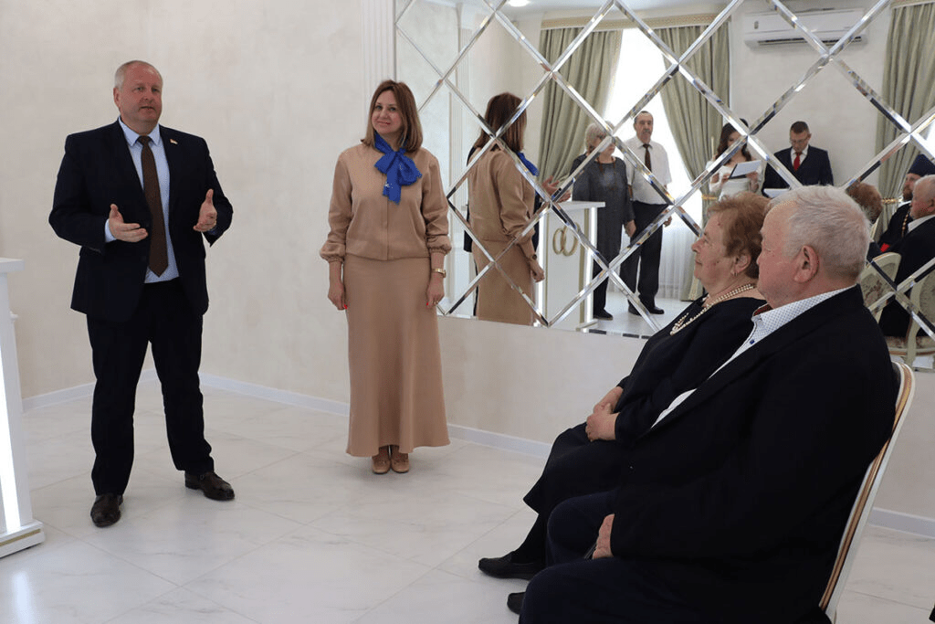 Дмитрий Заблоцкий, поздравляя супружеские пары, отметил, что именно такие крепкие союзы должны быть примером для молодежи, и добавил, что в нашем городе много счастливых семей, но наверняка лучше всех о счастье супружества знают те, кто имеет большой опыт, когда муж и жена на протяжении долгих лет любят и ценят друг друга.