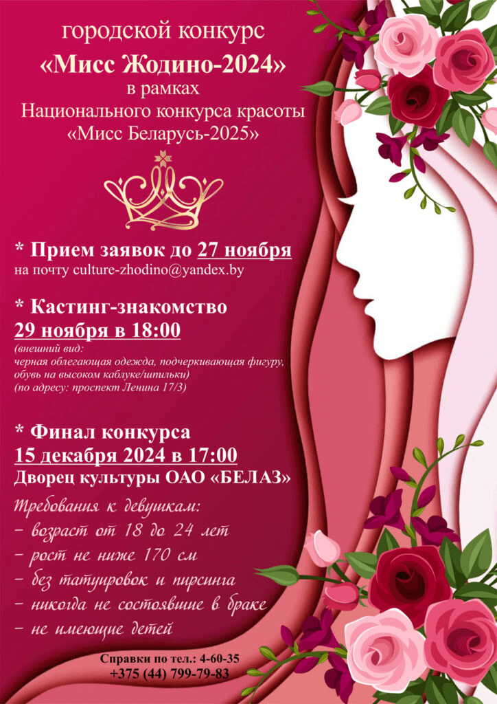 Успейте подать заявку на городской конкурс “Мисс Жодино-2024”
