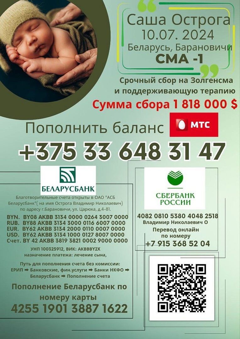 🙏Родители Саши обращаются с просьбой оказать любую информационную и финансовую поддержку.
