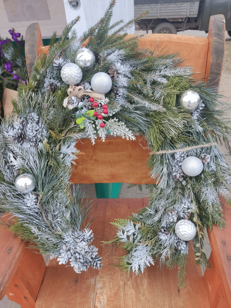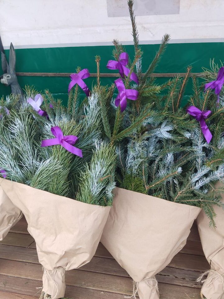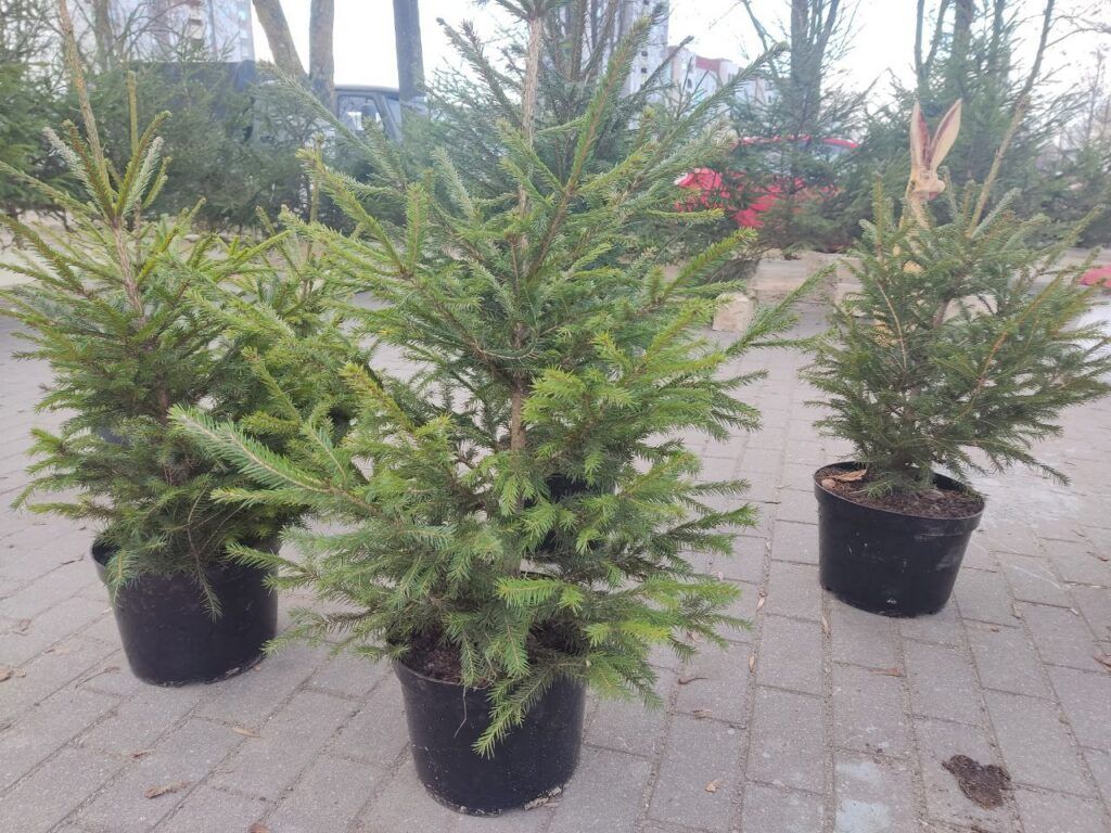 Покупателем предлагают как срезанные ели, так и деревья в кадках. Можно купить также новогодние букеты и венок из еловых лапок.