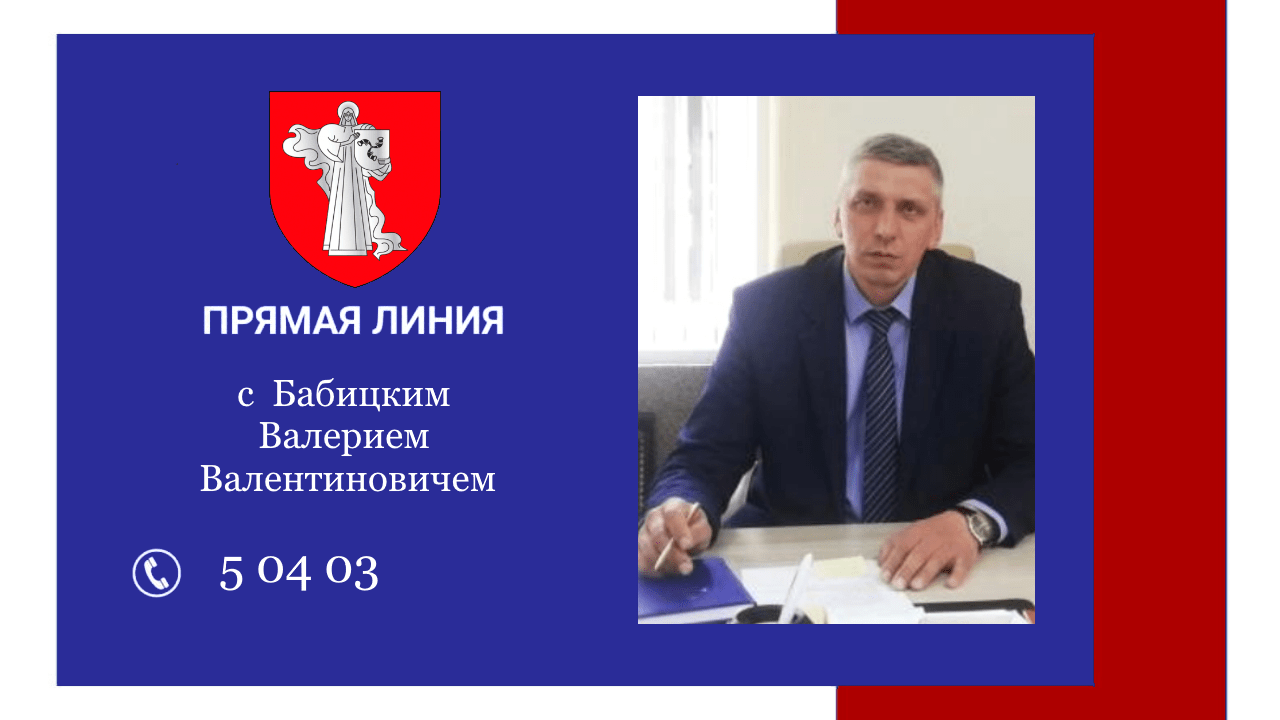 30 ноября 2024 г. с 9.00 до 12.00 «прямую телефонную линию» проведет заместитель председателя Жодинского горисполкома Бабицкий Валерий Валентинович, тел. 5 04 03 по вопросам сферы жилищно-коммунального хозяйства, строительства, благоустройства и эксплуатации автомобильных дорог