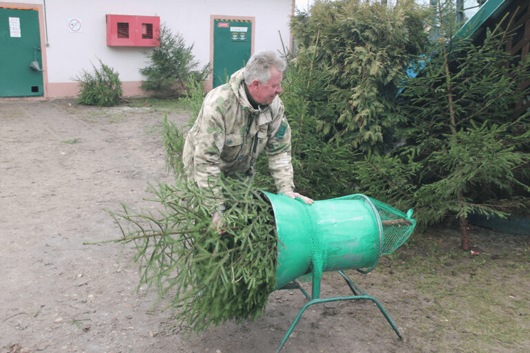 Новогоднее дерево упаковывают в специальную сетку, а покупателю выдают квитанцию об оплате.