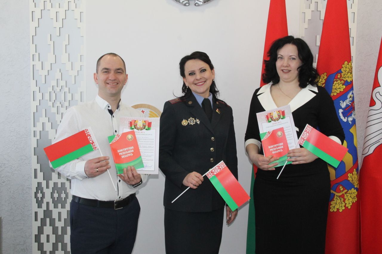 Новоиспеченным гражданам Татьяна Капитонова вручила памятные сувениры и главный Закон Республики Беларусь – Конституцию.