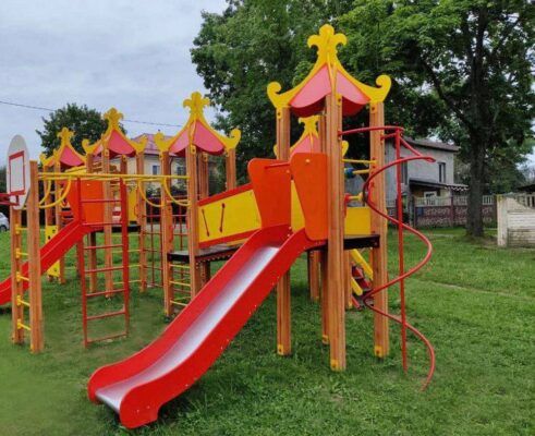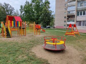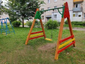 Яркие качели-карусели и горки радуют детишек во дворах на улицах Школьной, 4, Брестской, 5, Деревянко, 14 и 40 лет Октября, 19, 50 лет Октября, 19а, Советской, 24, Ленина, 9, 50 лет Октября, 29, Чапаева, 7, Тимирязева, 8.
