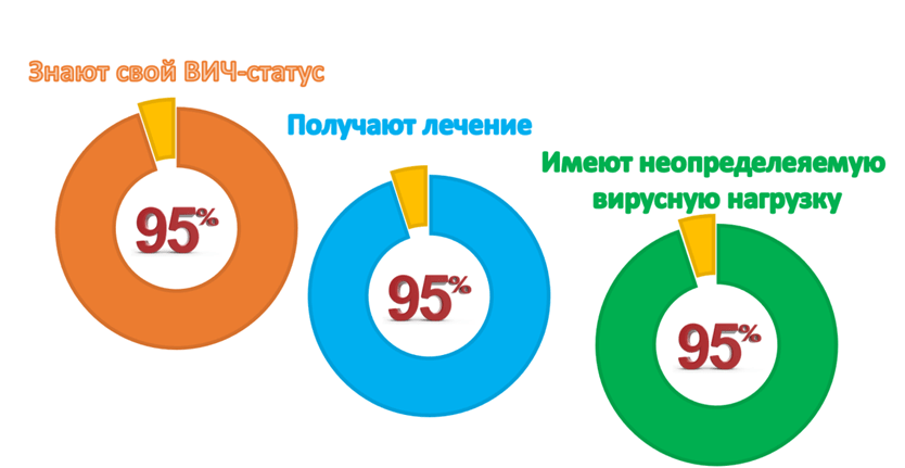 Стратегия объединенной программы ООН по ВИЧ/СПИДу (ЮНЭЙДС) «95-95-95» определяет основные задачи для достижения этой цели: 95% людей, живущих с ВИЧ, должны знать свой ВИЧ-статус; 95% людей, знающих свой ВИЧ-статус, будут получать лечение; у 95% людей, получающих лечение, оно будет эффективно и количество вирусных частиц в крови будет снижено до неопределяемого уровня, и эти люди не будут передавать инфекцию другим.