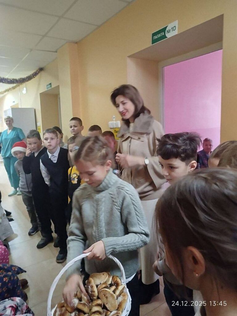 Школьники вместе с наставником-ментором – первым заместителем председателя горисполкома, председателем городской организации Белорусского союза женщин Натальей Сушко и учителем Анной Бердникович навестили пациентов БСУ и своими песнями, стихами и сувенирами