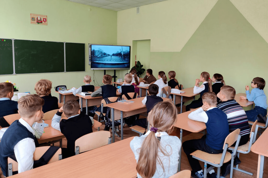 В конце мероприятия учащимся продемонстрировали профилактические ролики. Младшие классы посмотрели мультфильм с примерами действий пешехода при переходе дороги. А для старших подготовили фильм с моментами ДТП при разных ситуациях на дороге. И те и другие остались под впечатлением.