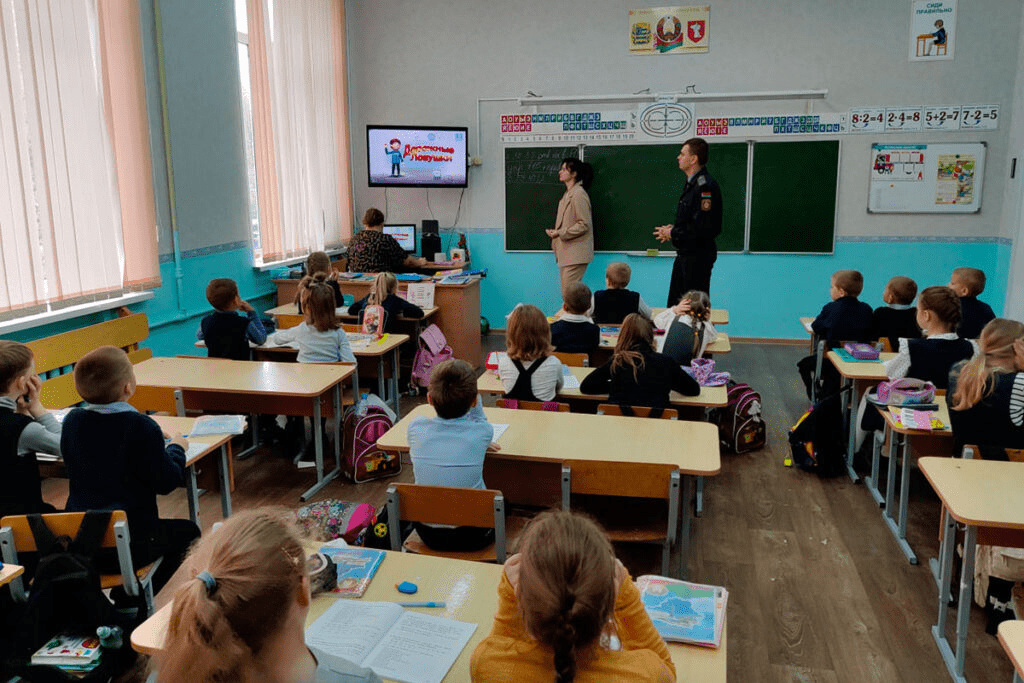 Перед началом лекции инспекторы задавали вопросы школьникам на знание ПДД. Спрашивали, во сколько лет можно одному ездить на велосипеде, как правильно переходить дорогу и перебегают ли ученики на красный сигнал светофора.
