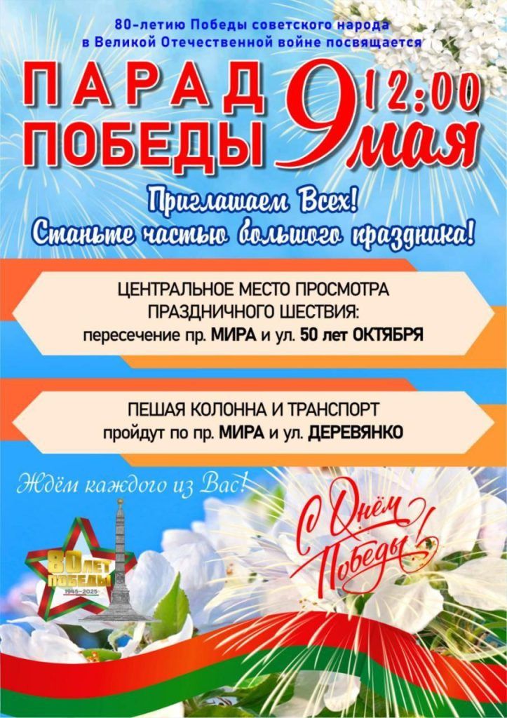 Парад в честь празднования 80-летия Победы советского народа в Великой Отечественной войне объединил жодинцев