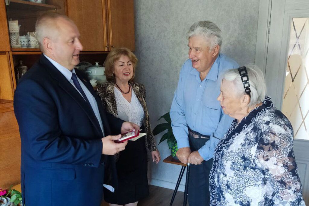 Почетный знак блокаднице Нине Лобач вручил председатель горисполкома Дмитрий Заблоцкий