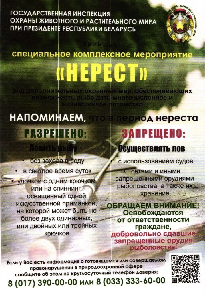 ГОСУДАРСТВЕННАЯ ИНСПЕКЦИЯ ОХРАНЫ ЖИВОТНОГО И РАСТИТЕЛЬНОГО МИРА ПРИ ПРЕЗИДЕНТЕ РЕСПУБЛИКИ БЕЛАРУСЬ проводит специальное комплексное мероприятие «НЕРЕСТ»